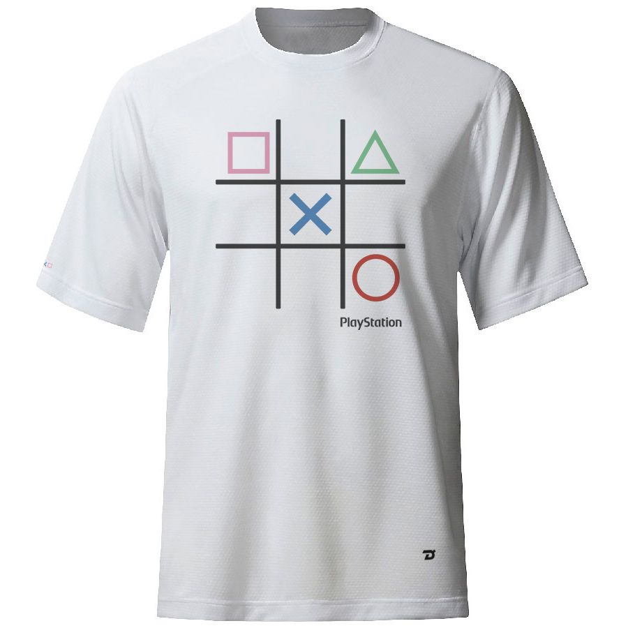 Estampas na frente, costas e na manga. Jogo da Velha Playstation onde se joga com os símbolos dos botões clássicos do Playstation, quadrado, triângulo, bola e xis.